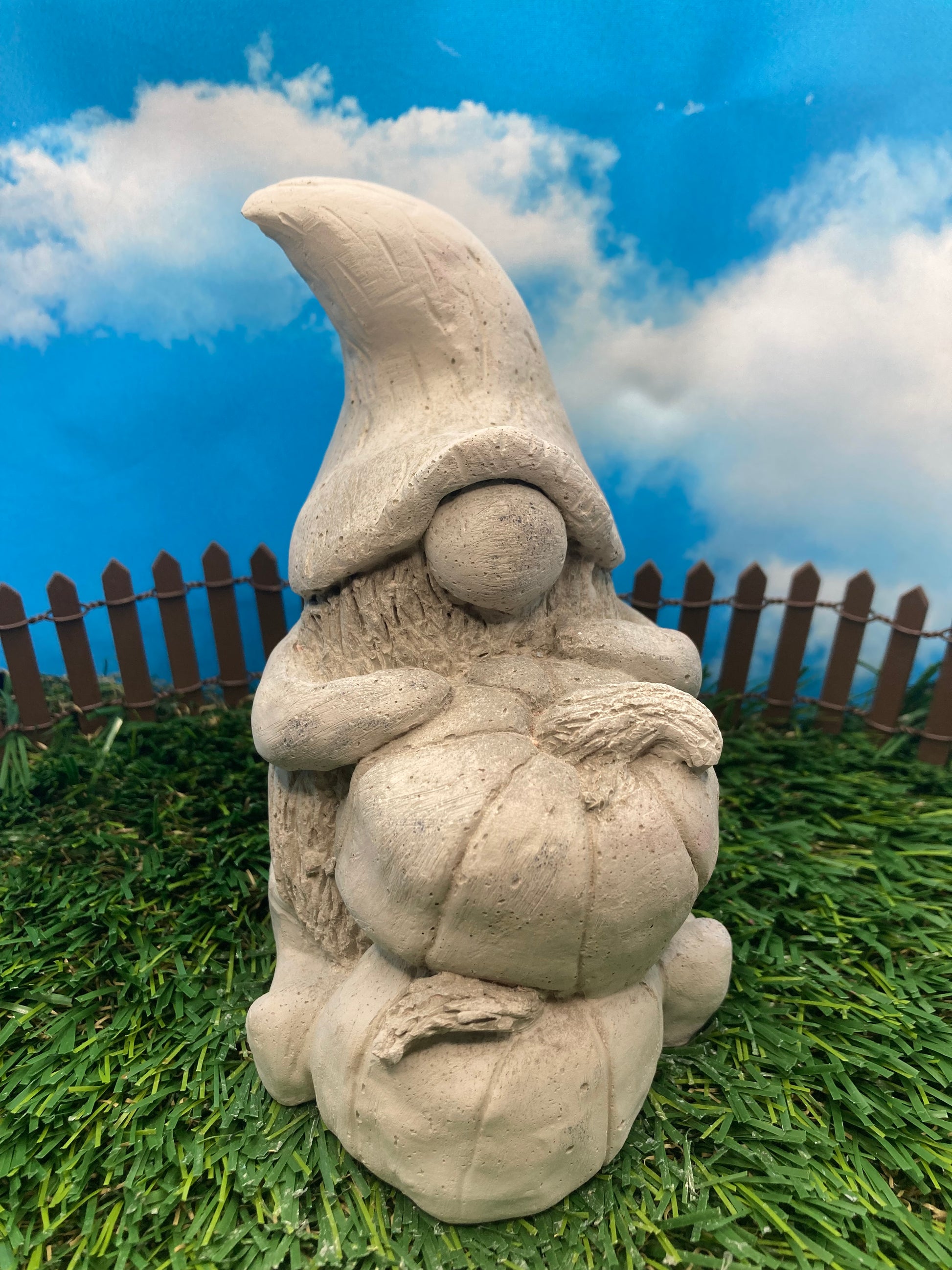 Gneville is a seasonal garden gnome that joins the family from September - November each year. As a pumpkin farmer, he insisted on posing with his pumpkins, so he did.