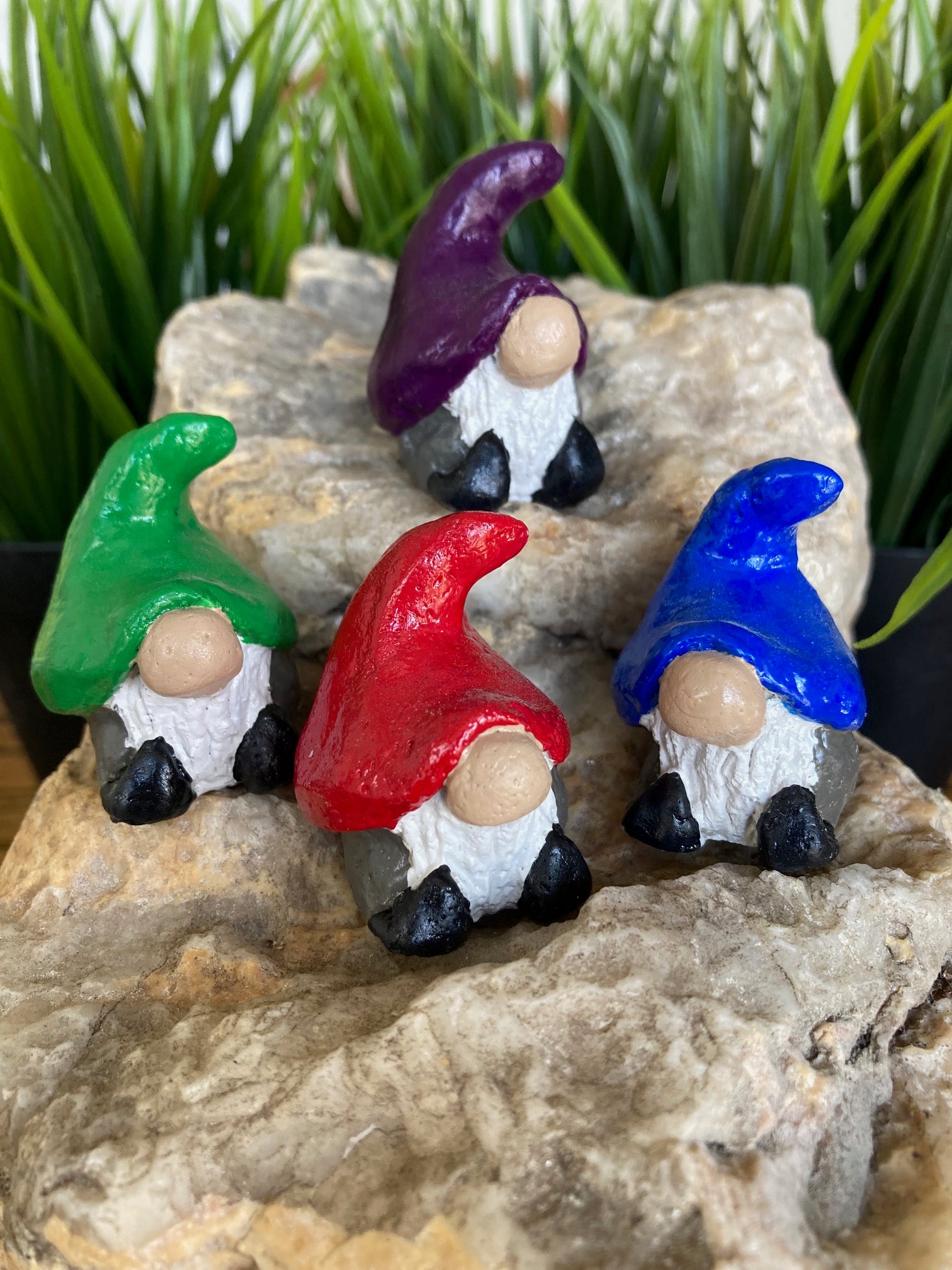 - 4 handmade cement Gnugget the garden gnome